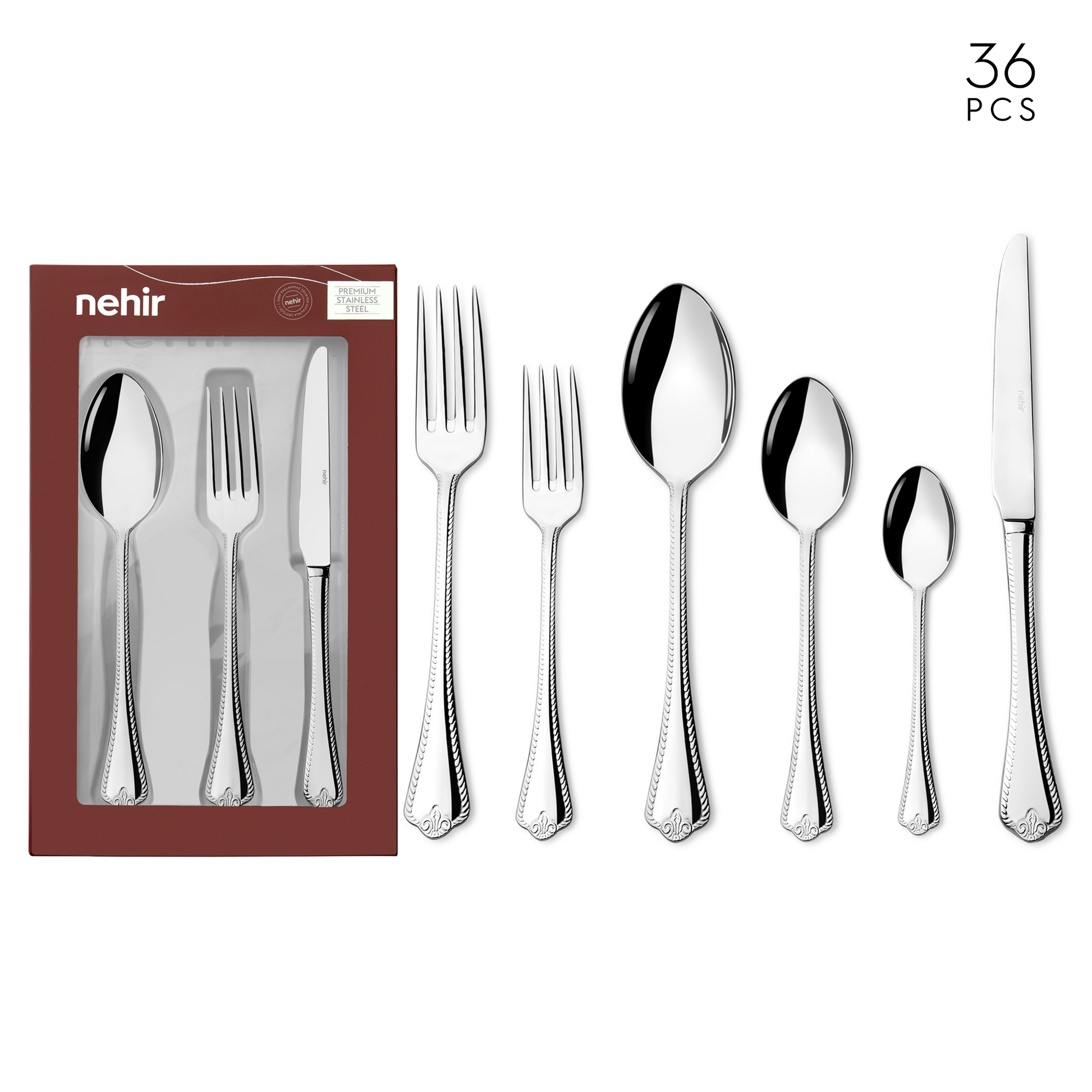 Nehir Fulya Mirror Finish 6-Person 36-Piece Cutlery Set