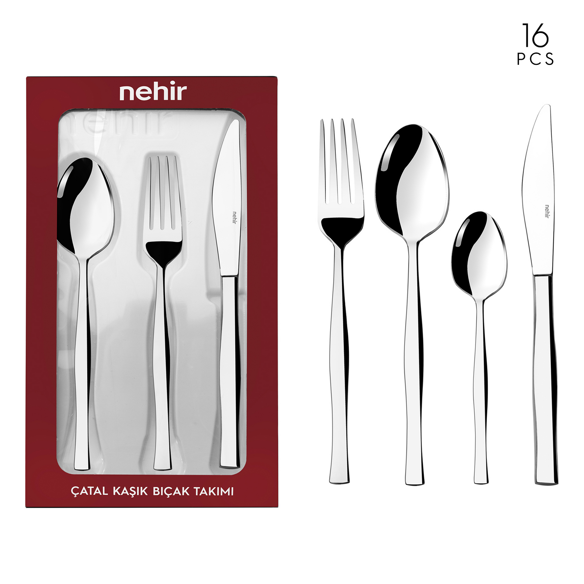 Nehir Zarif Mirror Finish 4-Person 16-Piece Cutlery Set